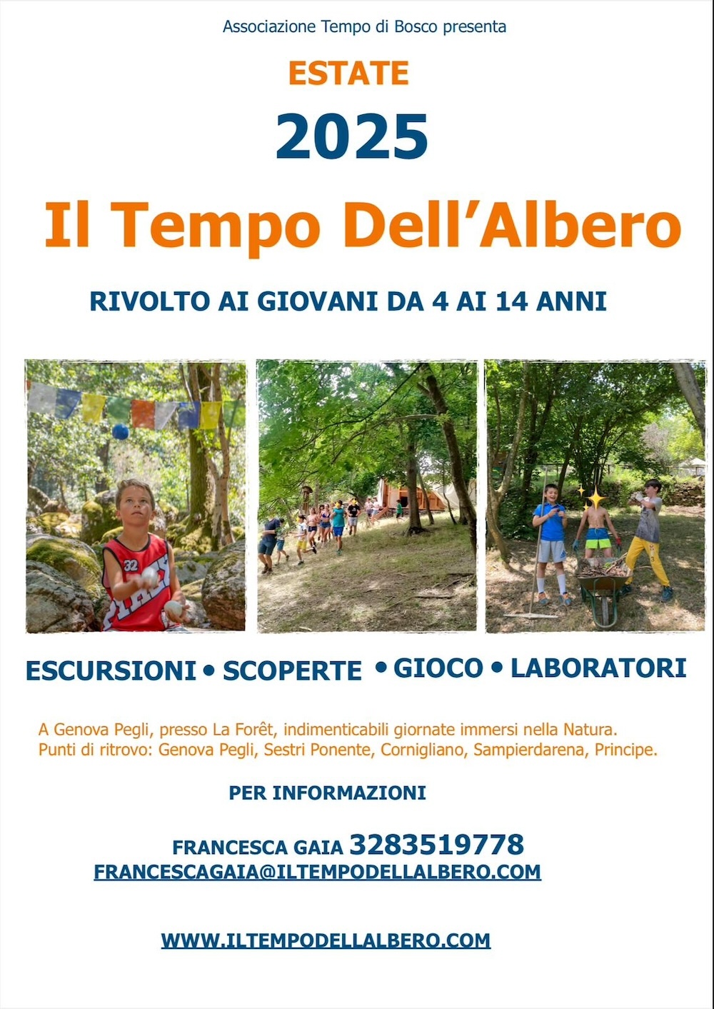 Ogni anno, durante l’estate e nei fine settimana; La Forêt e il territorio circostante diventano i luoghi dove i giovani possono esplorare, apprendere e sviluppare sia il corpo che la mente. Il Tempo Dell’ Albero ha come intento quello di accompagnare ogni giovane nel suo percorso di crescita, favorendo la libertà interiore, il coraggio di esprimere la propria opinione e di superare i propri limiti.